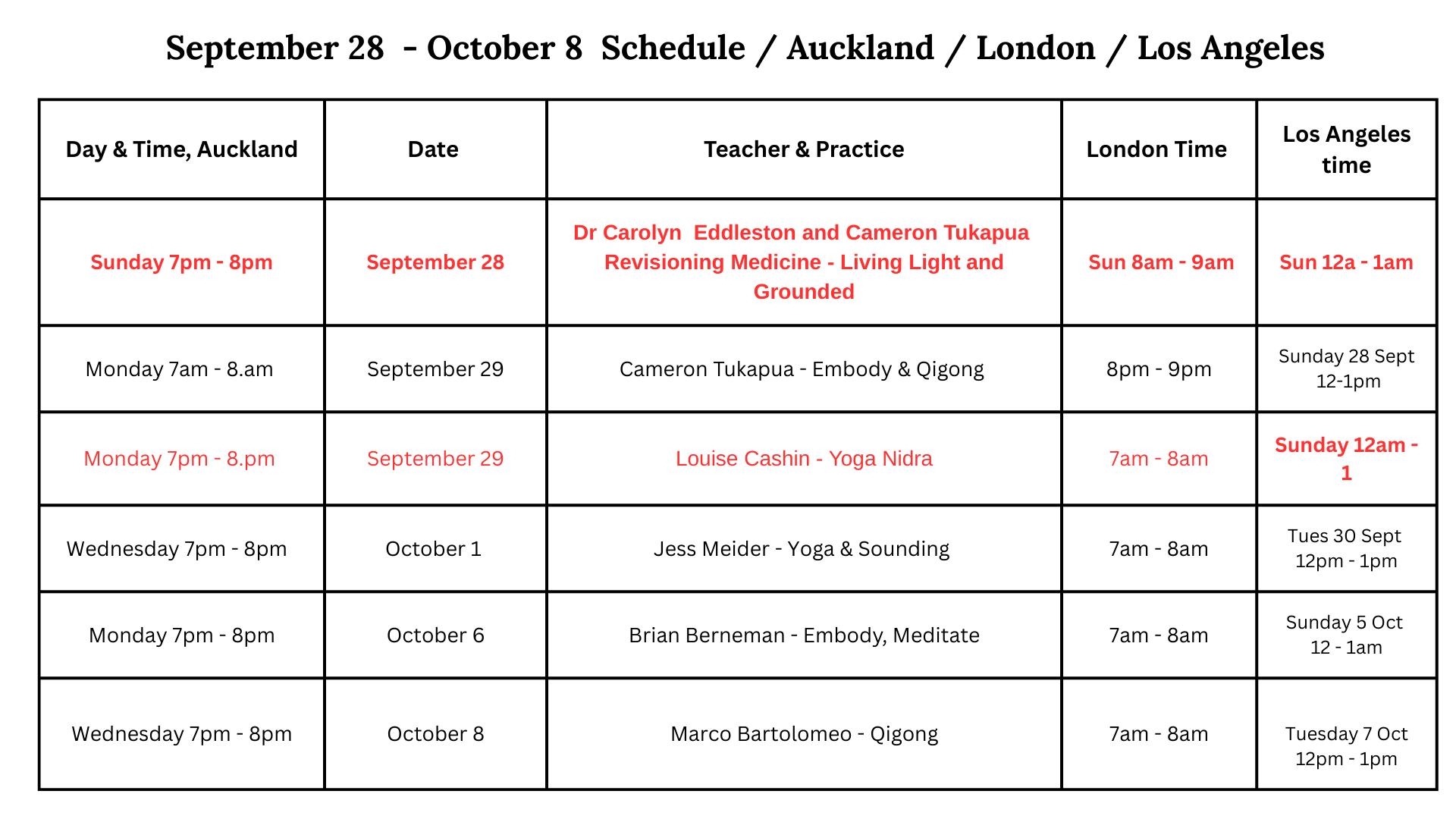 Special Notes: * The timetables will be 95 % correct with occasional monthly session changes **PLEASE NOTE Sessions will not be recorded. Heart centered awareness is being awake and aware of the present moment. We encourage showing up - that's where the magic lives